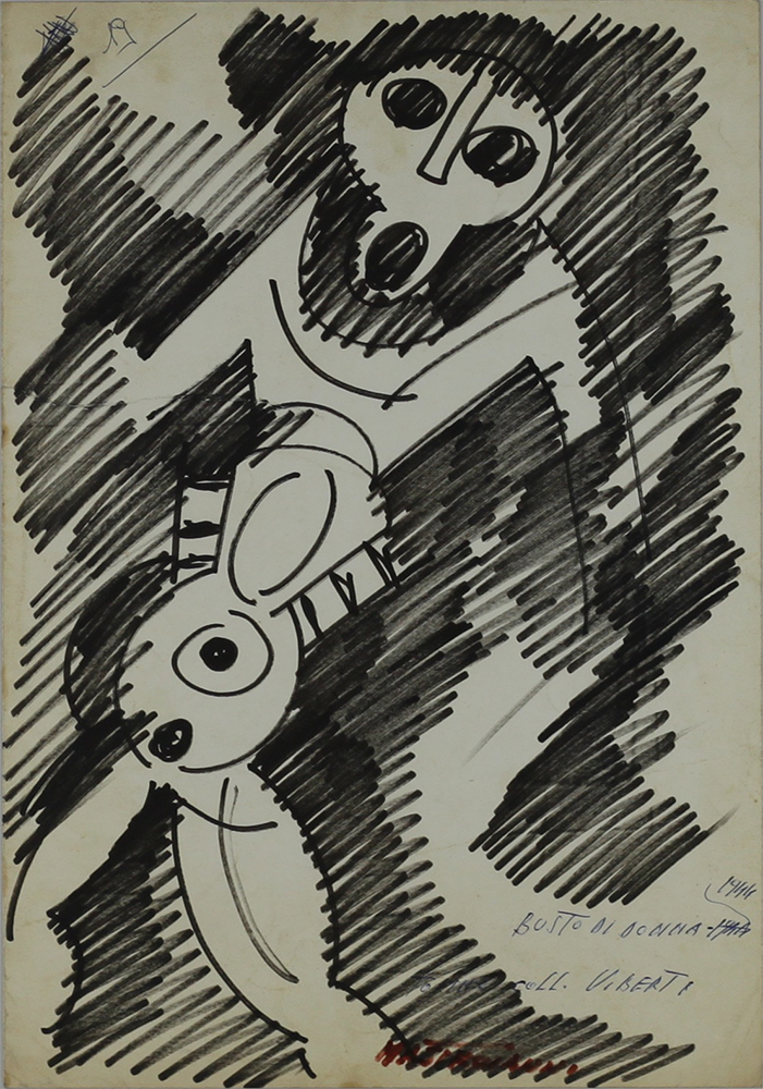 1988 Dim.35x49,8 Pennarello su carta Pubblicato a pag. 93 del Catalogo “I Mastroianni della collezione Amadio-Marconi” curato da Floriano De Santi, Ed. Arte On Firmato in basso a dx
