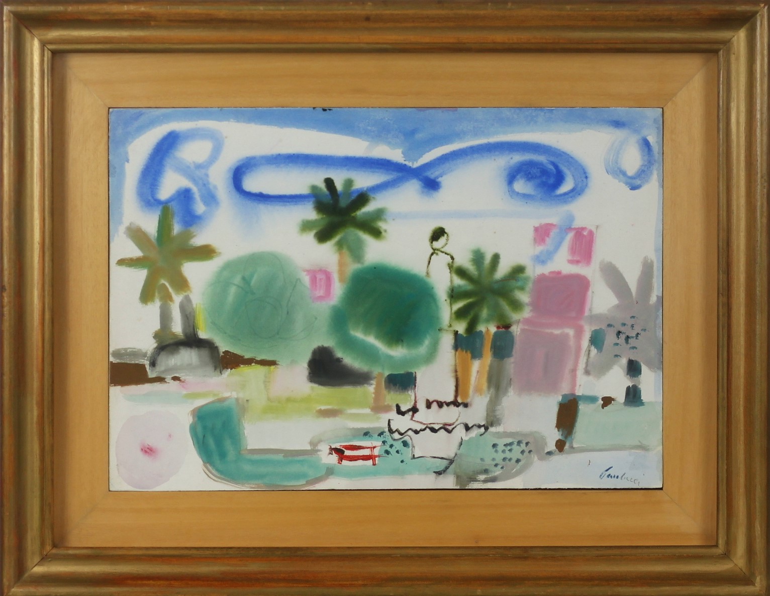 Gouache su carta/tavola Anno 1970 Dim.33x48 Autentica su foto dell'artista Al verso etichetta con dati Firmato in basso a dx