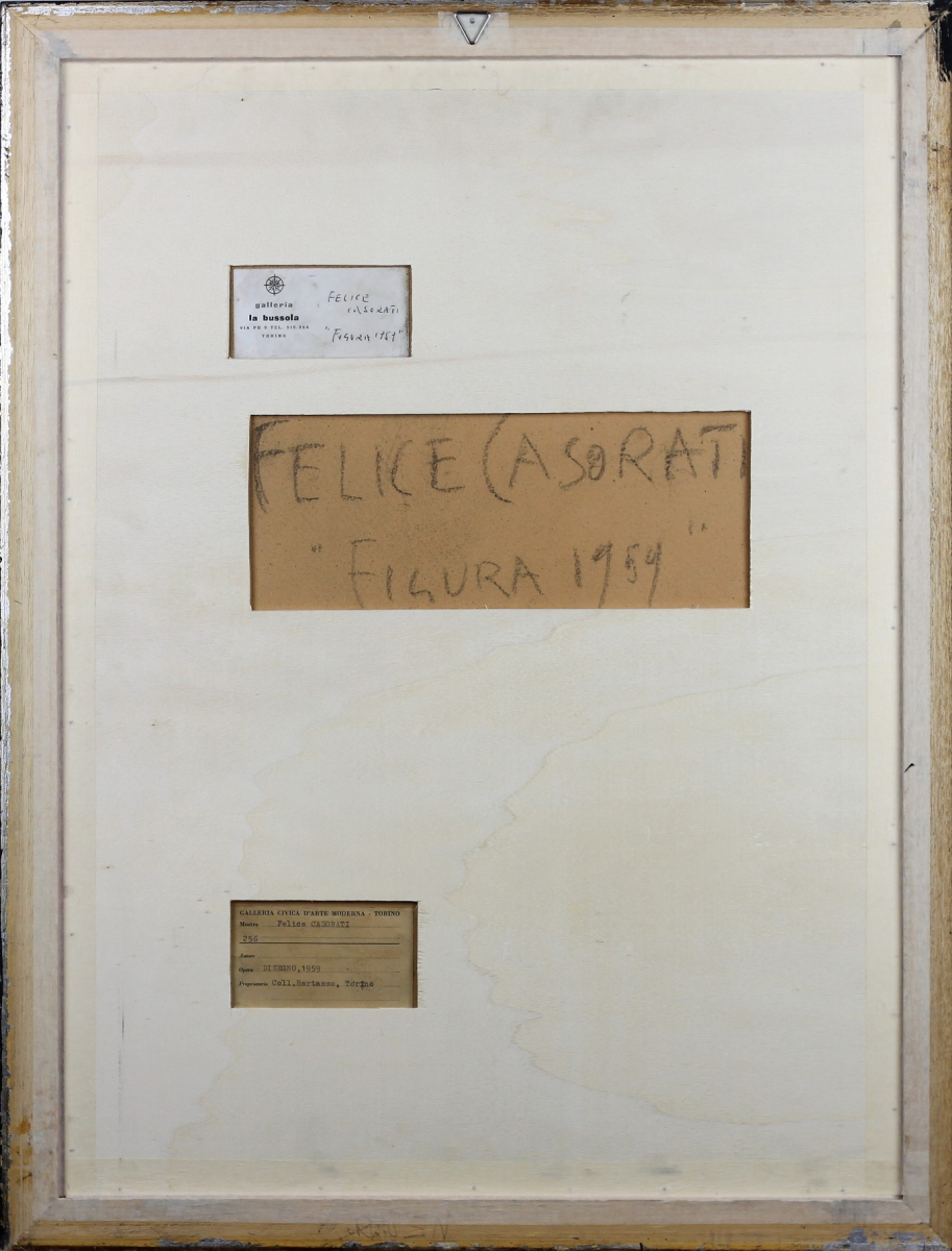 Matita su carta Anno 1959 Dim. 48x32 Al verso Etichetta Galleria La Bussola Torino Al verso data, titolo e firma Datato e firmato in basso a dx