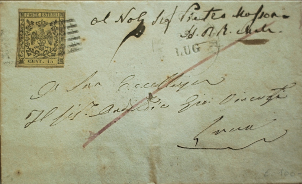Modena 1852- num. 3 su busta Prezzo di catalogo : 250 €