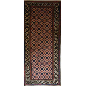 Misure cm 216x114 Caucaso Karabak Distretto azerbaigiano, ricco di villaggi attivi nella tessitura. Quando si parla di tappeti caucasici si indicano tappeti realizzati nelle aree a sud, est e nord della catena montuosa del Caucaso.Vi furono prodotti, durante l’ottocento, tappeti floreali per il gusto francese. Sono tappeti caratterizzati da motivi geometrici abbinati a motivi floreali ricchi e fantasiosi. A volte si trovano figure di animali o mostri stilizzati.